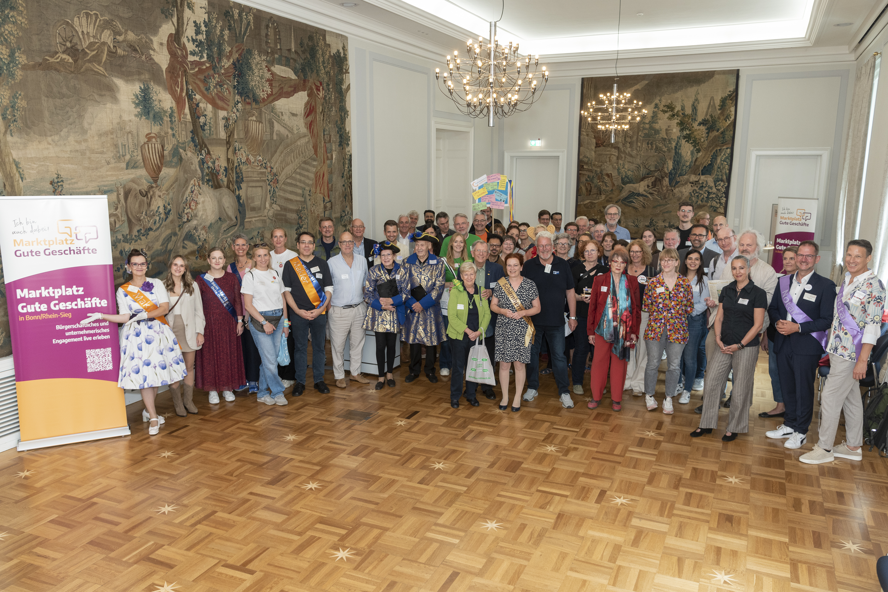 Foto: IHK / Jo HempbelÜber 35 Kooperationsvereinbarungen zwischen gesellschaftlich orientierten Unternehmen auf der einen und sozialen Organisationen / Vereinen auf der anderen Seite sind beim Marktplatz Gute Geschäfte geschlossen worden. Der Marktplatz fand zum 14. Mal statt – seit 2014 alljährlich im Alten Rathaus. Eröffnet wurde er von Bonns Oberbürgermeisterin Katja Dörner und Stefan Hagen, Präsident der Industrie- und Handelskammer (IHK) Bonn/Rhein-Sieg.