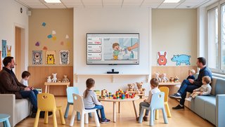 Das System ersetzt den traditionellen Wartemarkenautomat mit Papier-Tickets durch eine vollständig digitale Lösung: Patienten werden automatisch über Bildschirm und Ton aufgerufen, während im Wartezimmer aktuelle Informationen, Gesundheitstipps oder eigene Praxisinhalte angezeigt werden.